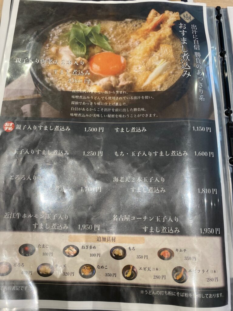 『味噌煮込みうどん』『おすまし煮込み』『元祖カレー煮込みうどん』などが主力です。